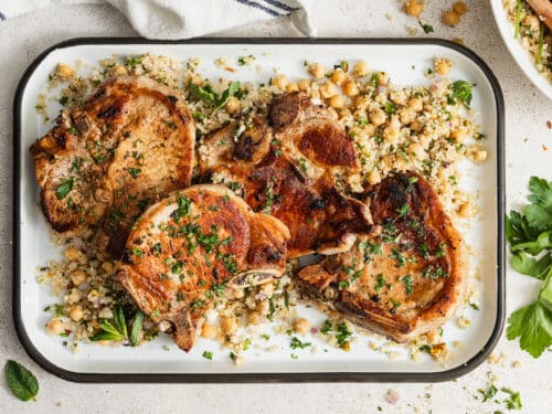 Garlic Butter Pork Chops with Lemon Chickpea Salad