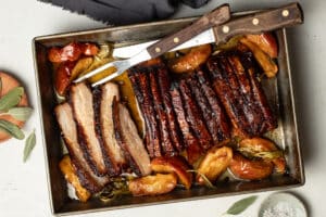 Bring some sparkle to your holiday table with Crispy Pork Belly with Roasted Apples & Sage — a festive showpiece that delivers golden crackle, cozy aromatics, and just the right touch of seasonal sweetness.