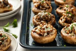Looking for the perfect appetizer that’s bursting with flavour and easy to prepare? Juicy mushroom caps are filled with a savoury mix of seasoned pork sausage, herbs, breadcrumbs, and melted mozzarella—finished with a splash of dry sherry for an extra layer of depth. Whether you’re entertaining guests or treating yourself to a cozy night in, this crowd-pleasing recipe is sure to be a hit. Use your favourite Alberta-made pork sausage for a truly local and delicious bite.